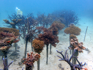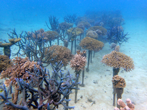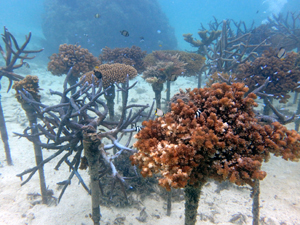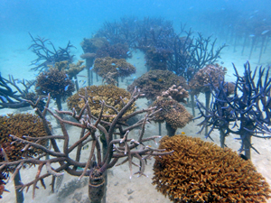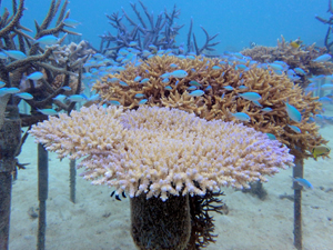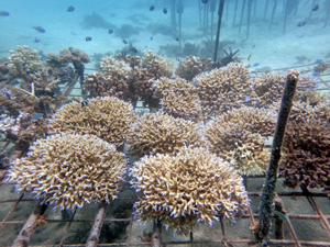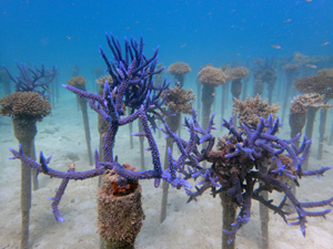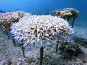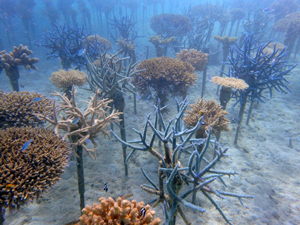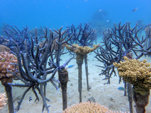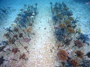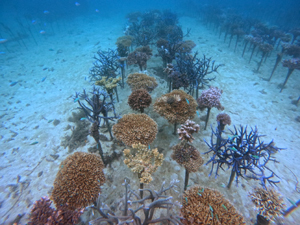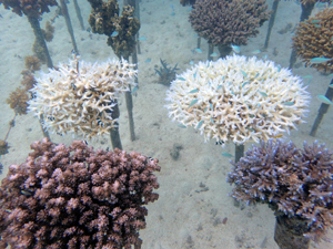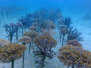 今回は養殖場の一部を動画で紹介。立派に育ったサンゴに群がる魚たちもご覧になられます。 |