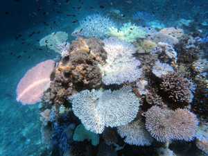 | ここからは特区292号内の養殖場周りの自然生息しているサンゴ礁。ほんと美しく最終的にはこういう状態に持っていきたいところ。 |