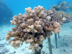 | 生き残ったサンゴたちは回復してきました。薄かった色も戻りだしています。 |