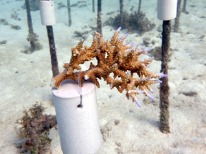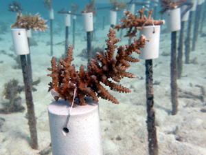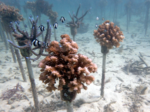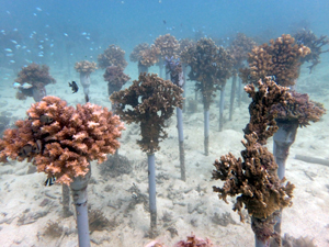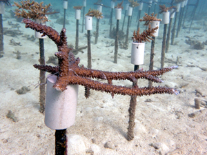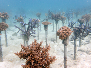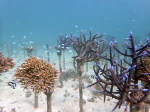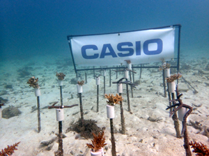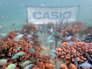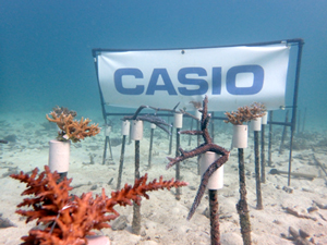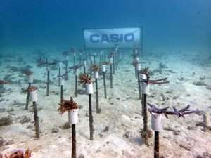 | 旗の後ろにも沢山のサンゴが植えられています。 | ||