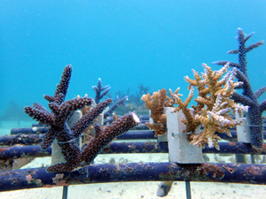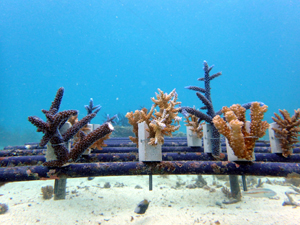 | 2026年1月6日 植付 畑製作から植付までを実施。4種類のサンゴを育てていきます。スギノキミドリイシ、ヤッコミドリイシ、マルヅツミドリイシ、イボハダハナヤサイサンゴ。 まずは1~2週間で針金を取り込み、固着剤に活着します。それが第一段階です。以後成長を始めます。今は海況も安定している時期のため生育には良さそうです。 ここ数カ月でしっかり基盤となる土台が形成されれば、夏の高水温時期との戦いです。今のうちにどんどん成長して強い個体になってくれるよう、メンテナンスしながら見守っていきます。 |