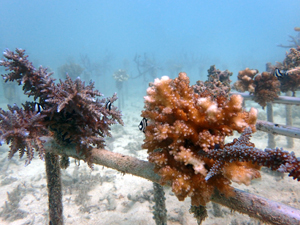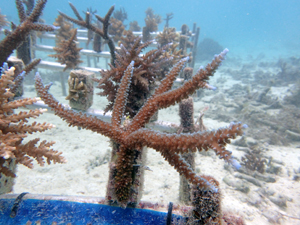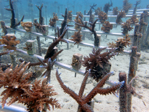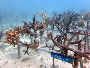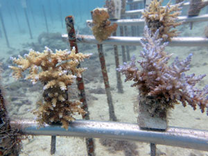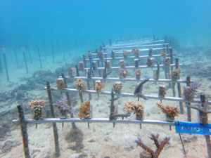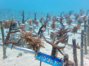 | 2024年2月28日 植付 水温22.8° 畑製作から植付までを実施。4種類のサンゴを育てていきます。スギノキミドリイシ、ヤッコミドリイシ、マルヅツミドリイシ、イボハダハナヤサイサンゴ。 |