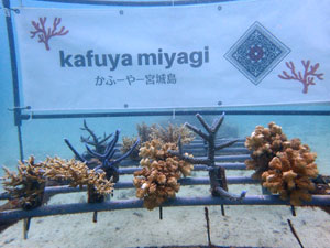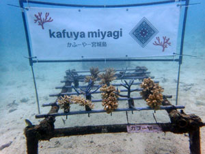 | 2022年3月4日 植付け、畑完成 水温22.4° 畑製作から植付までを実施。 10本の苗を植付しました。ヤッコミドリイシ・イボハダハナヤサイサンゴ・スギノキミドリイシ・マルヅツミドリイシ、ウスエダミドリイシの5種類。 今後の成長が楽しみですね。まずは固着剤へ安定すること。様々な要因に打ち勝ち立派に育ってくれることに期待! |
