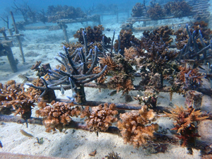 | ラーニングエッジ様のご支援でサンゴ20本を植付。3年後の産卵を目指して。ご支援に感謝いたします。 |