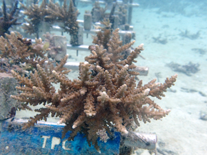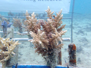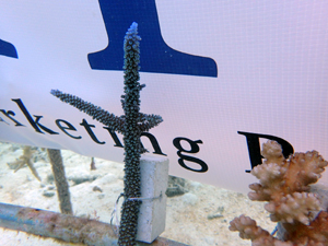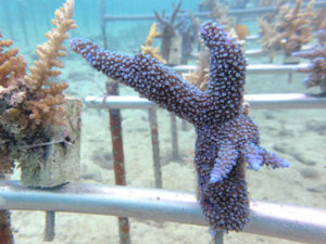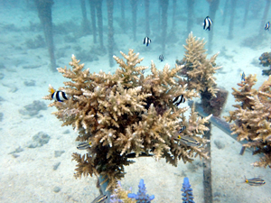全部合わせてみると、なかなか立派な畑になってきました。サンゴの生育状態もよく、日を追うごとに大きくなってきています。植え付け当初と比べると大きくなっているのが分かります。この調子でがんばってほしいですね。