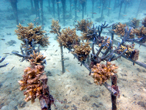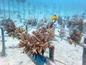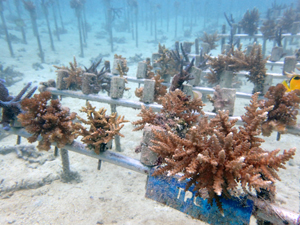 畑製作から植付までを実施。4種類のサンゴを育てていきます。スギノキミドリイシ、ヤッコミドリイシ、マルヅツミドリイシ、イボハダハナヤサイサンゴ。