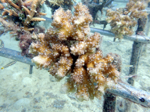 今年は石垣島で大白化が起こりました。当養殖場も大きな被害が出ましたがなんとか耐え抜いてくれました。一旦弱ったものの現在回復してきました。ここからは低水温時期のためこのままいけば成長再開し始めます。植え付け時に比べ大きくなったものはだいぶサイズアップしたのでもう少し育てば魚がつきだします。楽しみです。