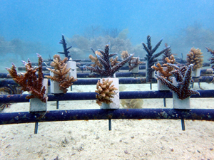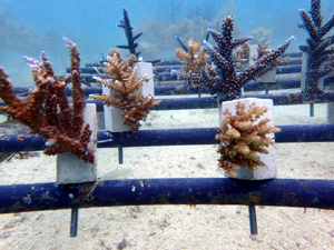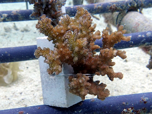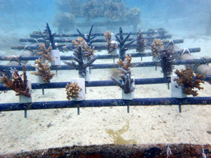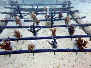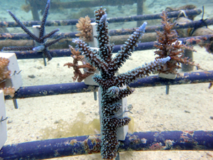 | 2026年2月18日 植付 畑製作から植付までを実施。4種類のサンゴを育てていきます。スギノキミドリイシ、ヤッコミドリイシ、マルヅツミドリイシ、イボハダハナヤサイサンゴ。 まず最初は針金の取り込みと固着剤へ固定するのに1~2週間。固着すれば成長が始まります。それから先は海藻の流れ藻シーズン。それを乗り越えると高水温時期へと変わっていきます。 現時点では水温も海況も安定しているので、順調に育っていく見込みです。サンゴの成長と共に生きものがあつまってくるので、この先が楽しみです! メンテナンスしながら見守て行きます。 |
