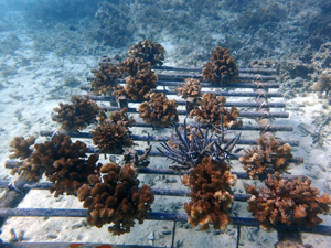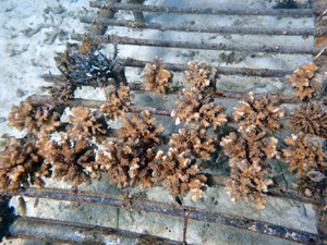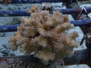 | 2024年12月17日 植付けから2年7ヶ月経過 今年は5月以降から水温上がりだし夏には石垣全体で大白化となり、大きな被害出ました。当養殖場も甚大な被害が出ました。そんな中でもなんとか耐え抜生き生き残った苗たち。ここにきて水温も下がり安定したため落ち着きを取り戻してきています。毎年のように試練のあるサンゴたちですがかなりな太さになりちょっとした悪天候当で折れる心配はありません。ここからさらにサイズアップしていくので、頑張ってもらいましょう。 |