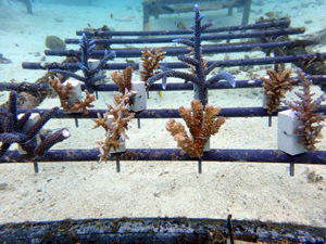 | 2026年1月6日 植付 畑製作から植付までを実施。4種類のサンゴを育てていきます。スギノキミドリイシ、ヤッコミドリイシ、マルヅツミドリイシ、イボハダハナヤサイサンゴ。 まずは1~2週間で針金を取り込み、固着剤に活着します。それが第一段階です。以後成長を始めます。今は海況も安定している時期のため生育には良さそうです。 ここ数カ月でしっかり基盤となる土台が形成されれば、夏の高水温時期との戦いです。今のうちにどんどん成長して強い個体になってくれるよう、メンテナンスしながら見守っていきます。 |