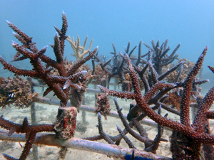 | 2024年2月28日 植付 水温22.8° 畑製作から植付までを実施。4種類のサンゴを育てていきます。スギノキミドリイシ、ヤッコミドリイシ、マルヅツミドリイシ、イボハダハナヤサイサンゴ。 |