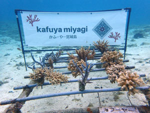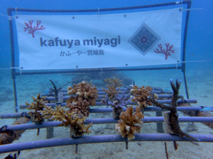 | 2022年3月4日 植付け、畑完成 水温22.4° 畑製作から植付までを実施。 10本の苗を植付しました。ヤッコミドリイシ・イボハダハナヤサイサンゴ・スギノキミドリイシ・マルヅツミドリイシ、ウスエダミドリイシの5種類。 今後の成長が楽しみですね。まずは固着剤へ安定すること。様々な要因に打ち勝ち立派に育ってくれることに期待! |